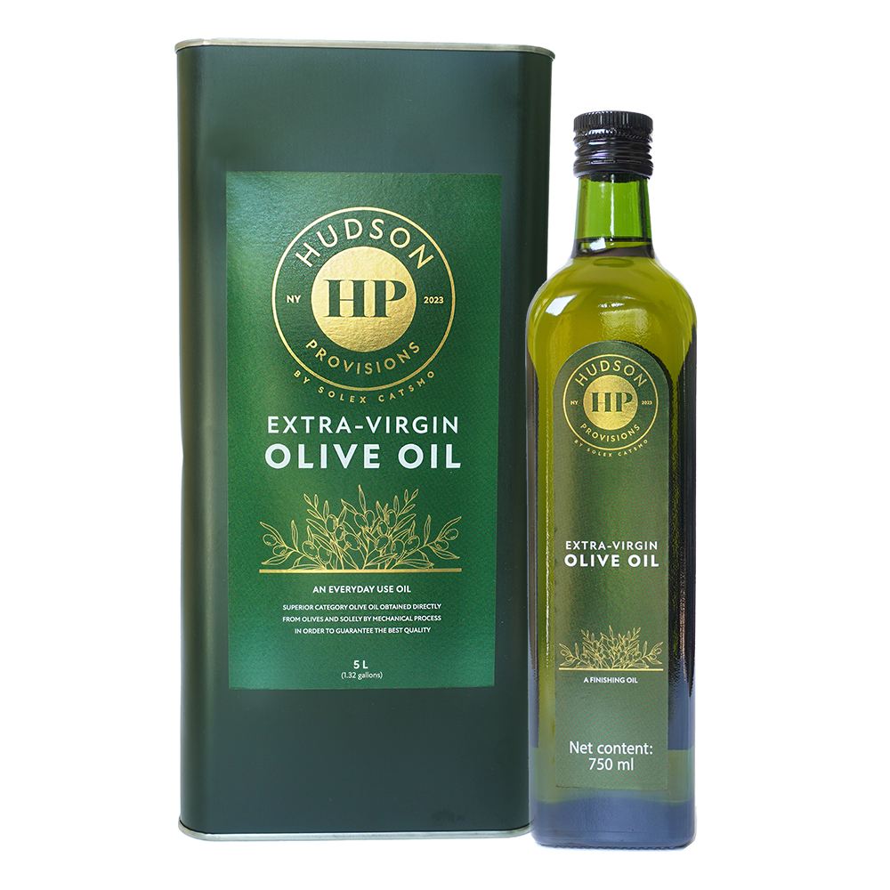 Hudson Provisions Everyday - An extra-virgin olive oil produced in Andalucia, Spain specially for daily use in the kitchen and at the table. Our olive oil is cold extracted from Picual, Hojiblanca, Arbequina, and Picudo olive varieties. Slight fruitiness, soft and ripe flavors. Sweet beginning, slightly spicy, and very harmonious. An excellent oil for all palates and culinary uses such as dressings, grilling, stews, and frying. Available in 5-liter tins